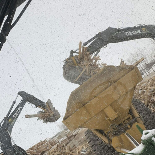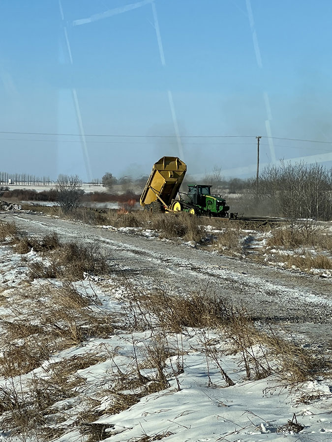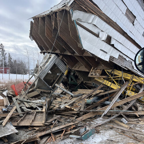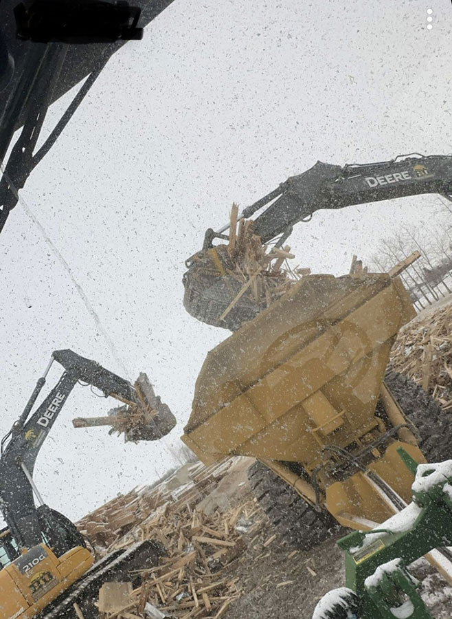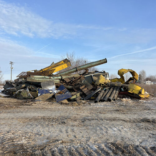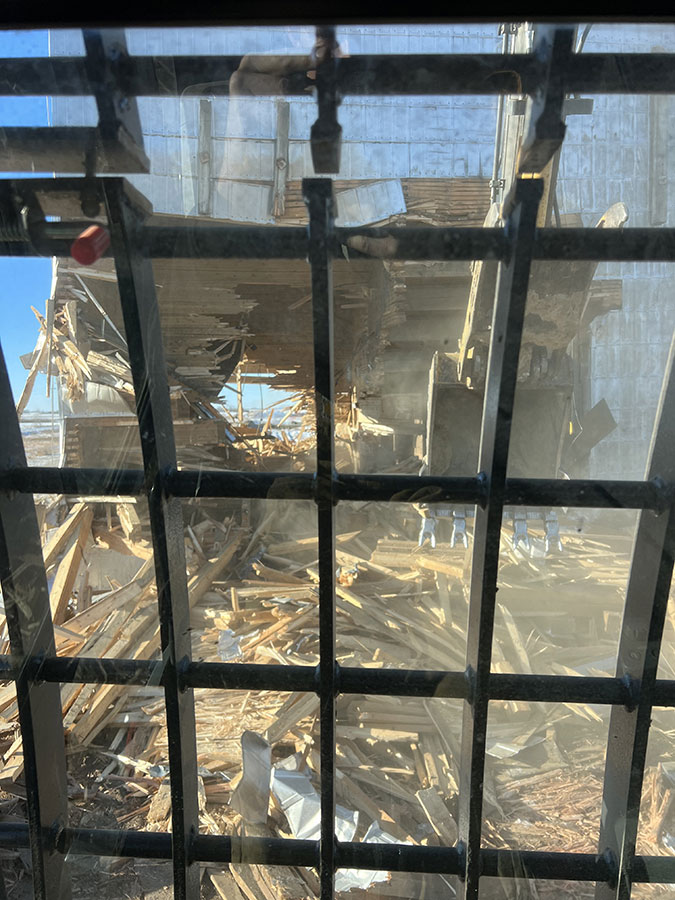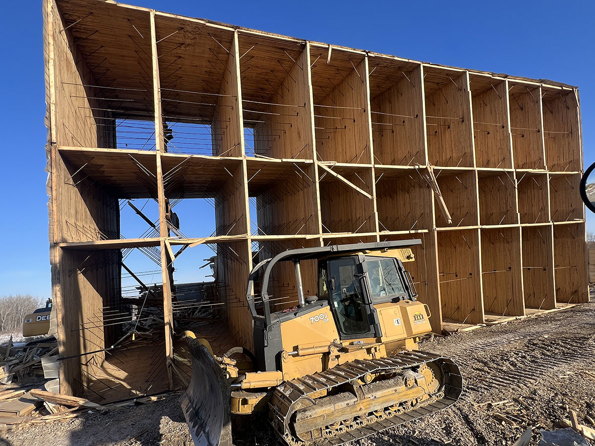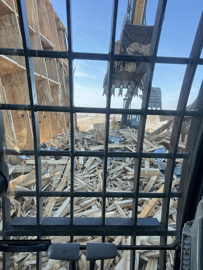 Sinclair elevator demo. After a summer storm destroyed the top of this elevator we got asked to demolish it for an insurance claim. We started by taking off the office area and put area. Followed by the main structure and then the annex. We burnt the wood on site, separated the scrap metal and used a concrete hammer to break up the concrete. We then put the concrete in the burn pit, and clay capped it along with landscaping the area where the elevator was.